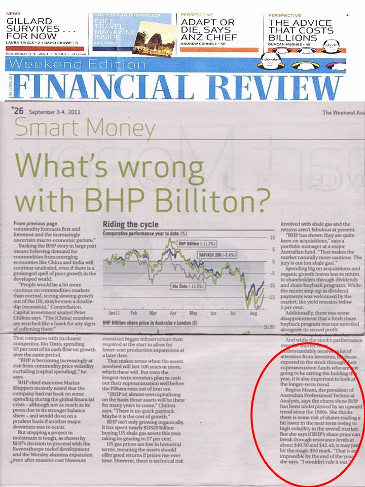 - Quote in Smart Money section of the Weekend Australian Financial Review : ‘What’s wrong with BHP Billington?’ By Jamie Freed (download JPG)